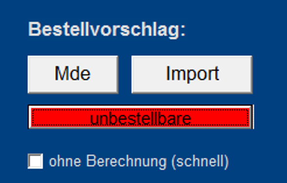 Gehen Sie soweit im Programm zurück das Sie wieder auf "MDE" drücken könnten. Hier sehen Sie nun eine neue, rot-markierte Schaltfläche. Hier können Sie sich "unbestellbare" Artikel anzeigen lassen.